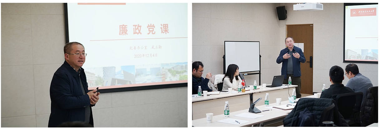 为认真贯彻落实校党委、纪委关于党风廉政建设的要求,坚持党风廉政教育常态化制度化,提升党员干部防变拒腐的意识和能力,12月4日下午,在北航沙河校区主楼C座511会议室,规资处党支部特邀学校纪委副书记、纪委办公室主任武立勋为全体党员进行廉政专题教育,同时,我处邀请审计处部分党员联合听党课。党课活动由规资处支部书记邹煜良同志主持。