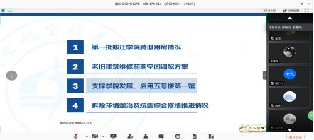 按照学校关于学习日的最新指导意见,2020年5月27日下午,规资处以视频会议形式开展五月第二次学习日活动,集体学习“两会”内容和精神,同时通报我处今年重点工作推进进度,并重点强调做好安全稳定工作。会议由邹煜良处长主持。