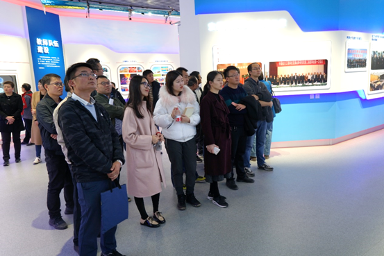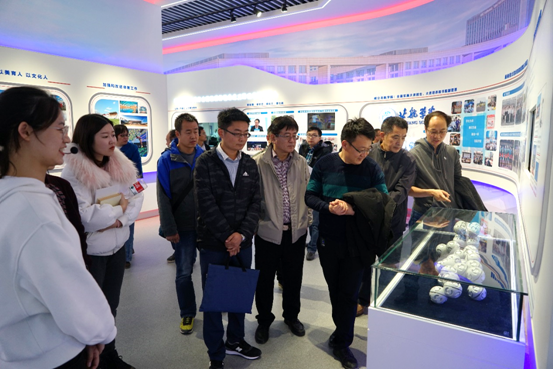 参观中,大家认真聆听讲解,仔细观看历史图片、互动视频及模型场景,不时驻足交流,感叹北航67年来发生的翻天覆地的变化。通过展览,大家详细了解了学校发展历程、两校区学科布局学、学校建设领军人才、北航支撑国家重大战略及科研创新技术研发等内容,并在“月宫一号”“临近空间飞艇”“航空发动机钛合金整体叶盘”等展示内容前久久驻足。