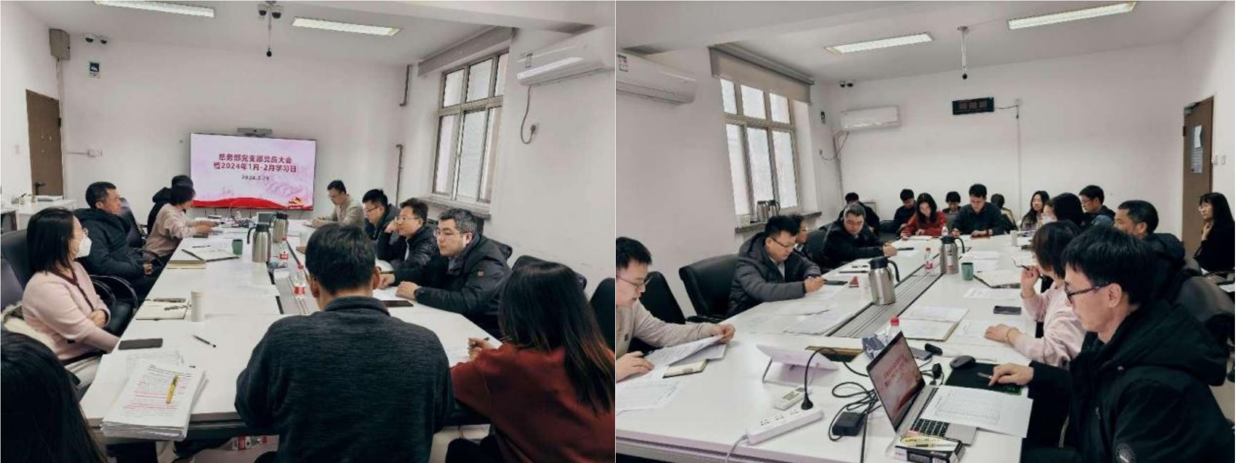 2月29日下午,总务部召开党员大会,传达学校2024年度工作会和全面从严治党工作会会议精神,对党员进行民主评议,并组织学习1-2月“学习日”有关内容。