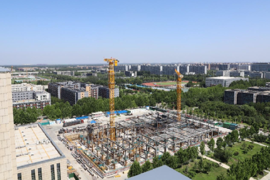 图书馆项目位于沙河校区主楼东南侧,总建筑面积4.8万平米,建筑高度32米,地上6层,地下2层。项目于2024年3月正式动工,参建各方团结一心、众志成城,于5月18日提前完成土护降和结构底板施工,有效化解雨季泡槽和基坑坍塌风险。目前现场正在全力推进地下混凝土结构和地上钢结构施工,在保证安全和质量的前提下,加快完成年度建设目标。
