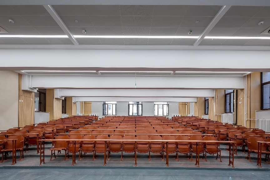 翻新阶梯教室桌椅、打磨木质楼梯扶手、抛光水磨石地面、保留代表性房间号……通过对特色突出的建筑元素进行保留,进一步传承学校历史文脉。