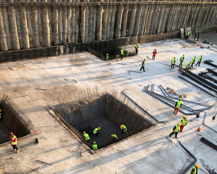 自3月1日正式有效复工以来,参建各方团结一心,精心策划施工方案及施工措施,统筹落实劳动力资源保障措施,采取全专业科学合理插入实施的三维施工管理策略、专业和工序流水交叉施工。现场的参建人员在恶劣的工作环境中坚守岗位、严格落实防疫抗疫措施、兢兢业业、战严寒斗酷暑,主体结构提前8个月完成,其余专业施工全面展开,累计完成产值达5.5亿元,累计进场施工人员3500余人。