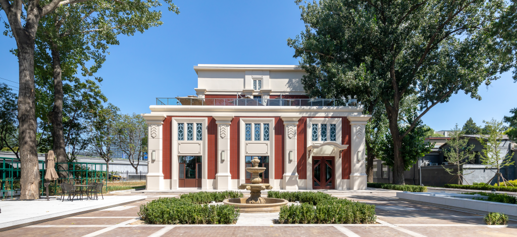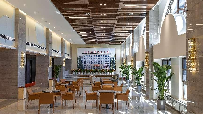 西侧室外景观采用简欧庭院风格设计,取名“友园”,意为全体北航校友的家园,同取“有缘”的谐音,寓意这里凝结着全体校友与母校的情谊。
